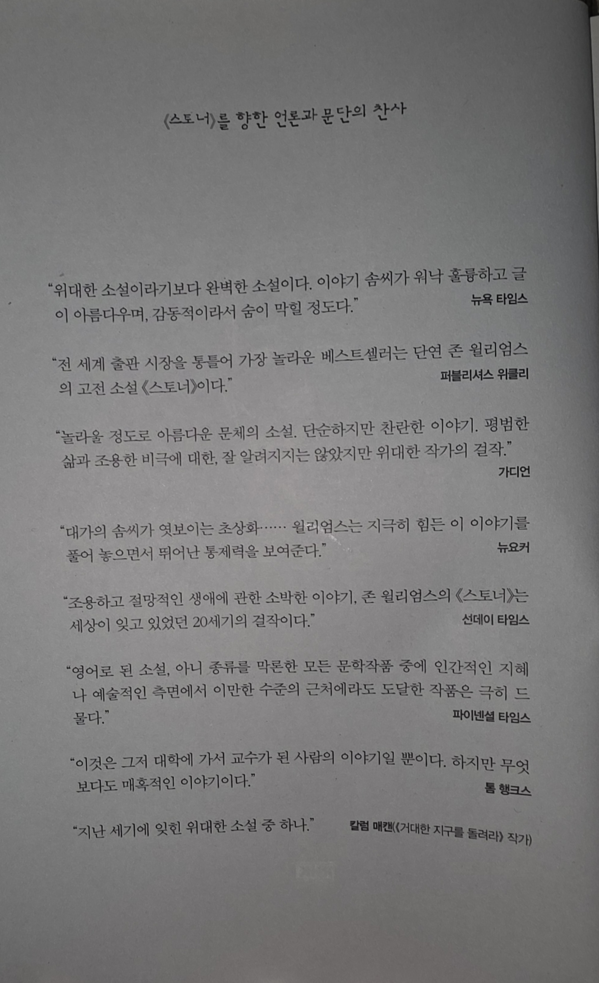 바로 이것이 스토너의 삶에 귀 기울이는 이유이자 뜨거운 감동의 근원일 것이다.